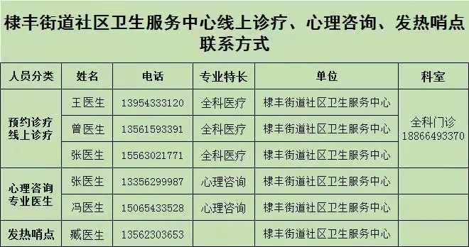 心理咨询、发热哨点联系方式