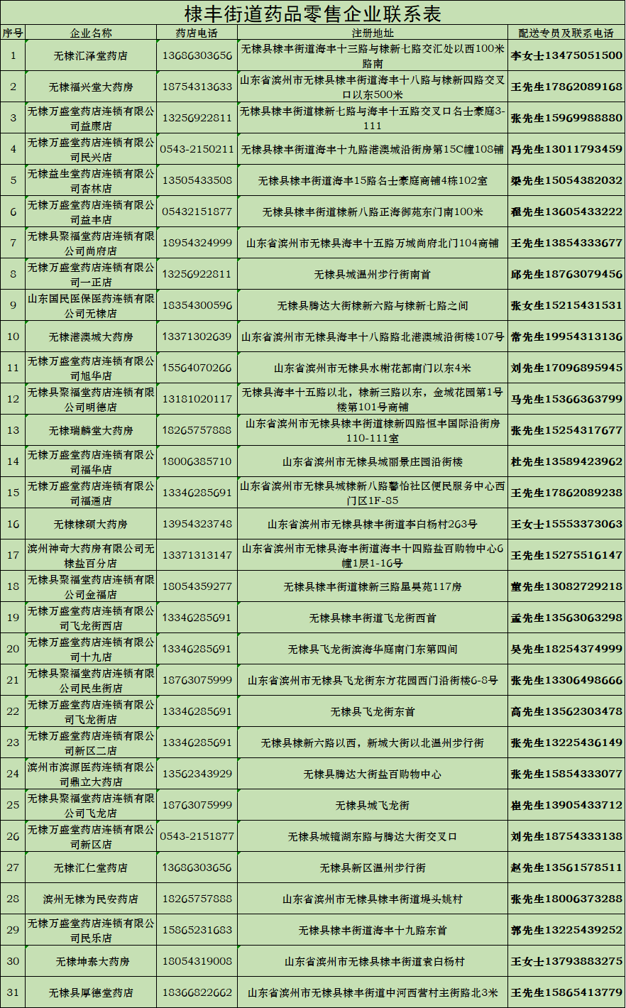 棣丰街道药品零售企业联系表