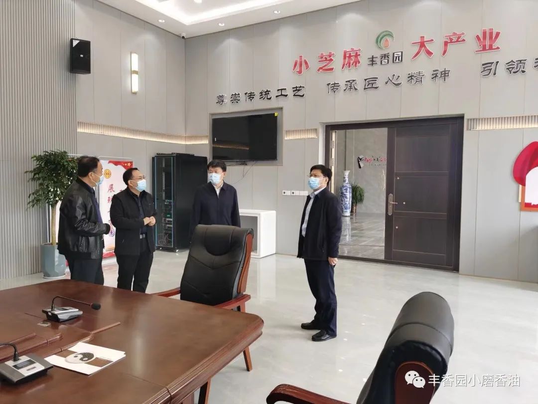 2022年4月2日县委书记郑振亮在海丰街道工委书记徐文国陪同下来到丰香园公司视察生产企业复工复产情况,积极为复工复产企业把脉献计。