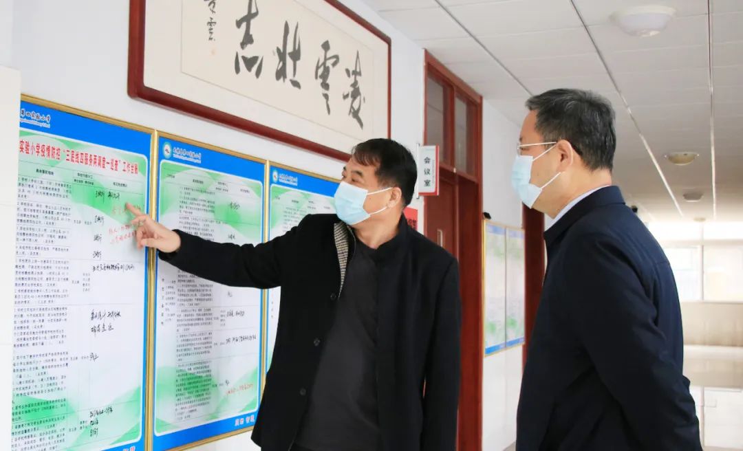 李兴岭同志每到一处实地查看门卫管理、餐厅食堂、疫情防疫、物资储备、校区环境、办公室、教室、临时留观室等重点区域,对学校、幼儿园复学准备、复学方案和线上教学做详细了解,对校园安全和复学准备等工作做重点强调。