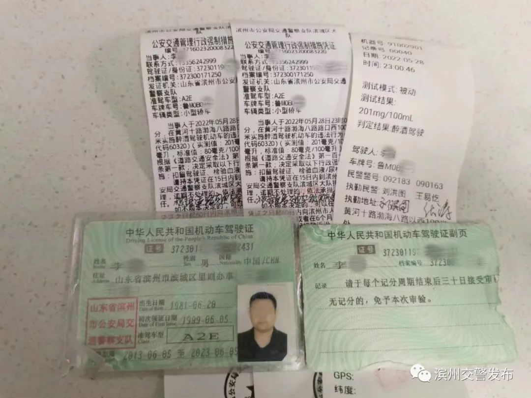 5月28日23时许,滨城区大队一中队民警在黄河十路渤海八路路口以西100米处设临时检查点查纠交通违法行为时,发现一辆小型轿车驾驶人存在涉嫌饮酒后驾驶机动车违法行为,民警示意其停车接受检查,并对该驾驶员进行呼气式酒精检测仪检测,检测结果为201mg/100ml,涉嫌醉酒驾驶。经询问查证,该驾驶员李某对其饮酒后驾驶机动车的违法行为供认不讳,民警随后将其带至滨州市医学院附属医院急诊科进行抽取静脉血,目前案件正在进一步办理之中。
