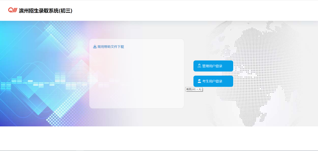 第一步:打开浏览器,在地址栏中输入滨州招生录取系统(初三)网址http://edu.binzhou.gov.cn/zk/ 进入平台首页,如下图所示: