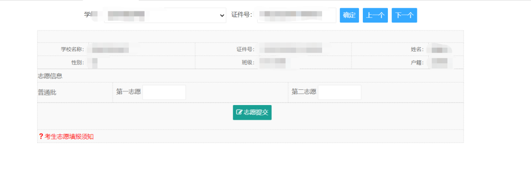 2.志愿信息为个人隐私,考生及家长应保护好个人账号与密码,志愿填报必须由考生本人填写,任何个人、单位不得代替考生填报志愿,不得对他人志愿进行修改,否则将依法依规追究相关人员责任。