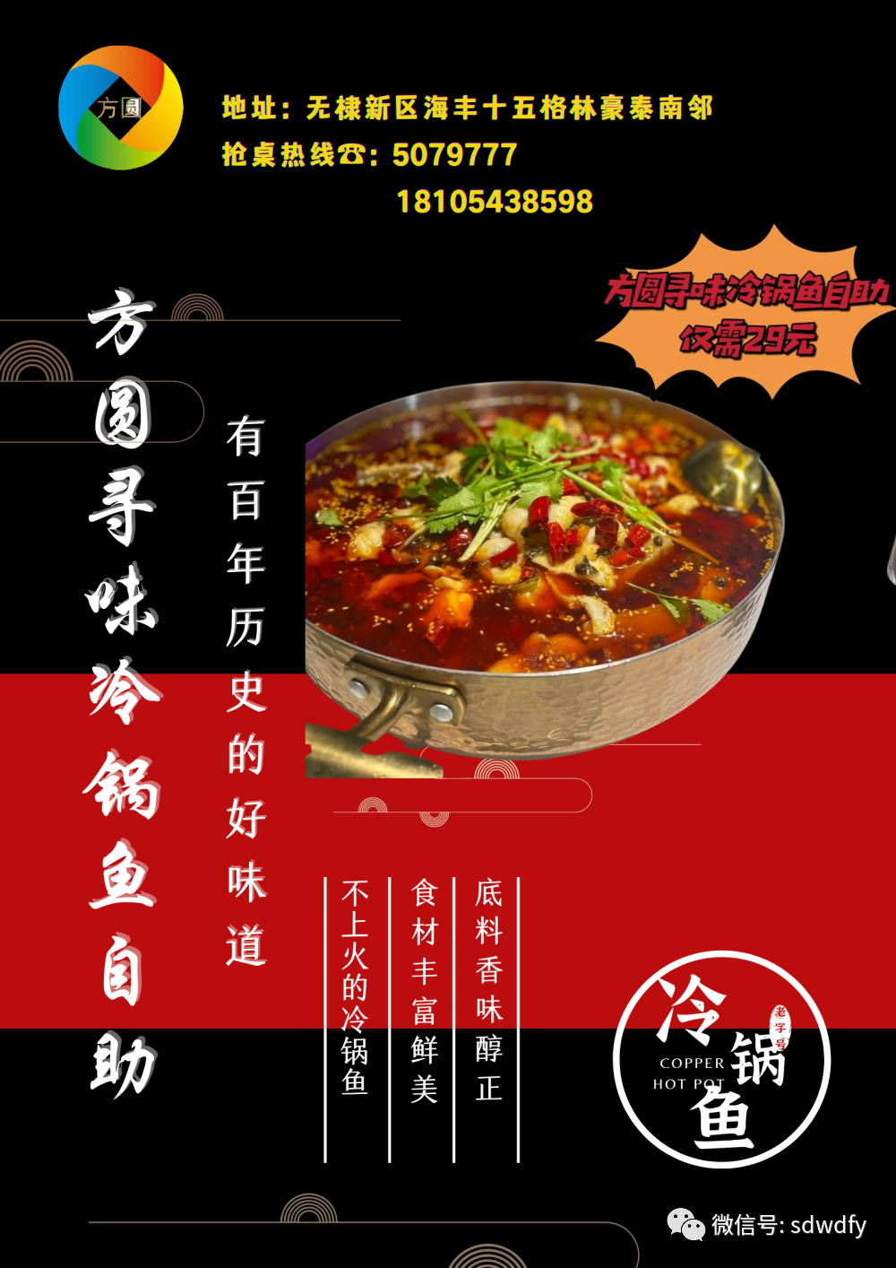 方圆寻味冷锅鱼自助餐欢迎广大新老顾客光临本店就餐!(本广告解释权归方圆寻味冷锅鱼自助餐所有)