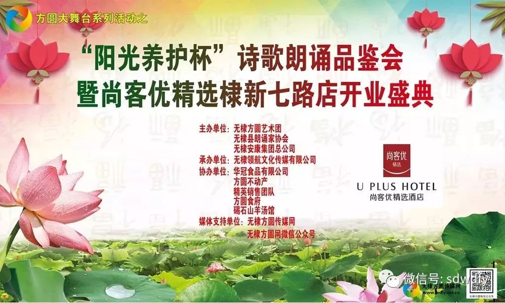 为倡导全民阅读,建设书香社会,无棣方圆艺术团、无棣县演讲与朗诵艺术协会和无棣县安康集团总公司特举办“阳光养护杯”大型诗歌朗诵会暨尚客优精选棣新七路店开业庆典”活动。