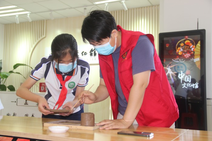 滨州日报/滨州网无棣讯 7月14日,无棣县第三实验小学学生在老师的带领下走进县文化馆,体验泥塑文化,感受非物质文化遗产带来的独特魅力。