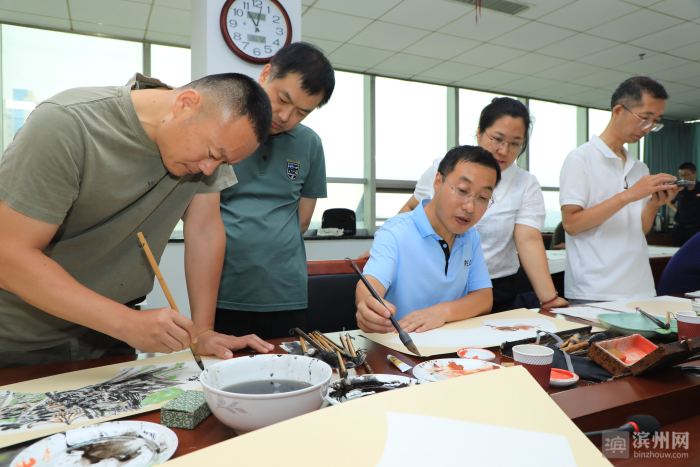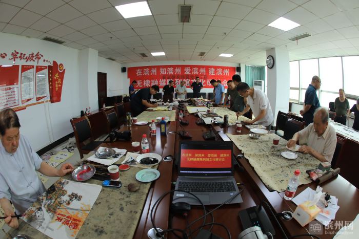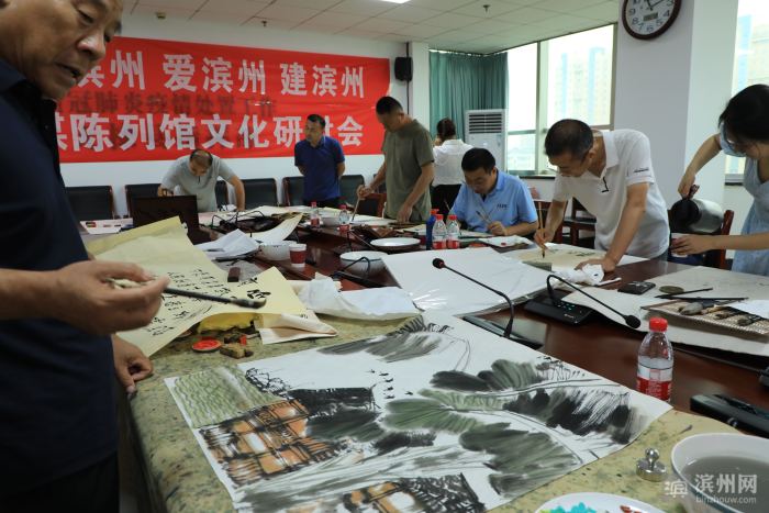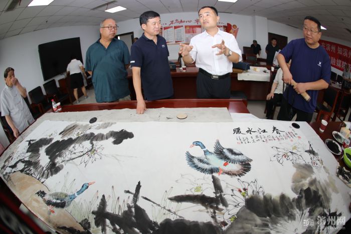 与会人员先到无棣县融媒体中心陈列馆、直播大厅、信息采集中心等地进行参观指导,后召开了陈列馆文化研讨会。现场,县书协、美协会员进行了倾情创作,无棣县政协原主席杨宝珩为“无棣融媒文化陈列馆”题词。最后,10余位书画家合作为融媒文化陈列馆创作了巨幅美术作品“春江水暖”。
