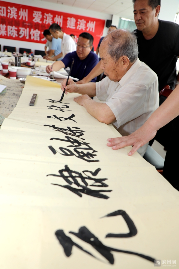在无棣县陈列馆文化研讨会期间,杨宝珩、郭云鹰及无棣县书协、美协10余位书画家倾情合作,为融媒文化陈列馆创作了巨幅美术作品《春江水暖》。