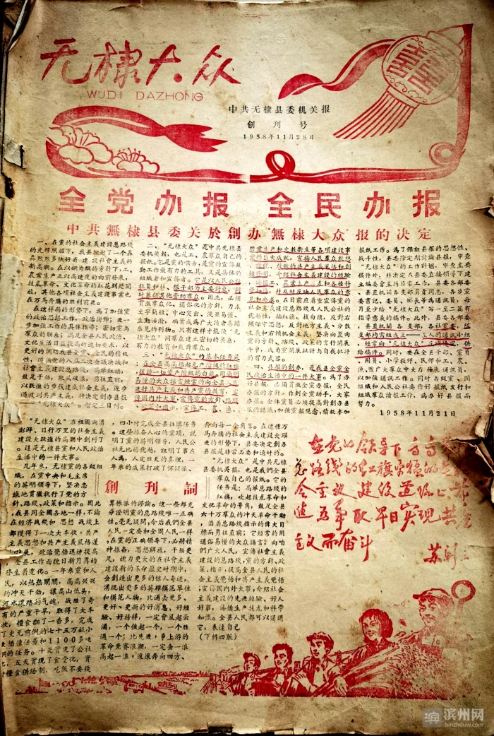 1958年,《无棣大众》创刊,成为中共无棣县委的机关报