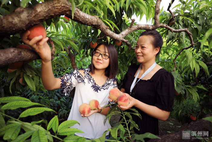“这‘久保桃’的好吃是出了名的,孩子放假了,也一起体验采摘的乐趣……”7月28日,一名女游客与女儿在张金楼家的桃园里采摘“久保桃”,高兴地对笔者说。