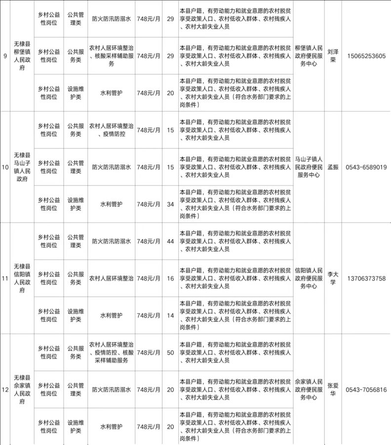 全县计划增设乡村公益性岗位950个,具体岗位名称、招聘条件、岗位数量见《无棣县2022年度第二批乡村公益性岗位招聘信息表》(附件1)。