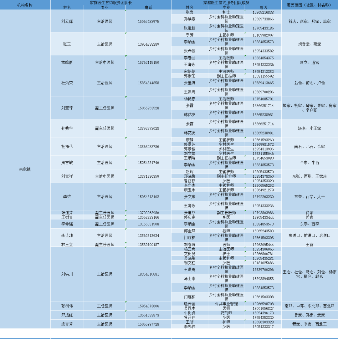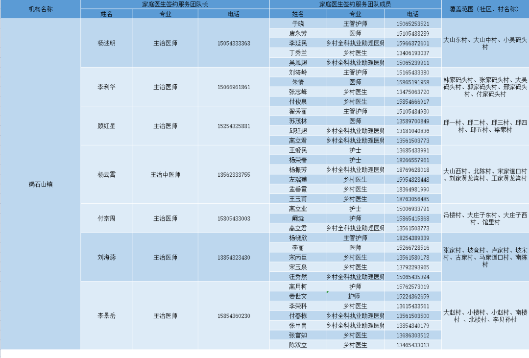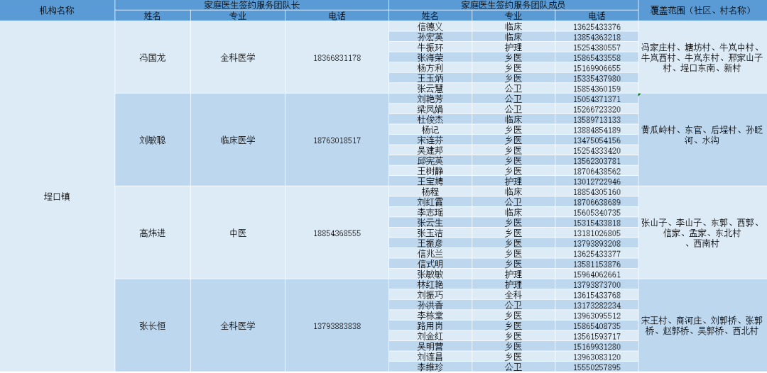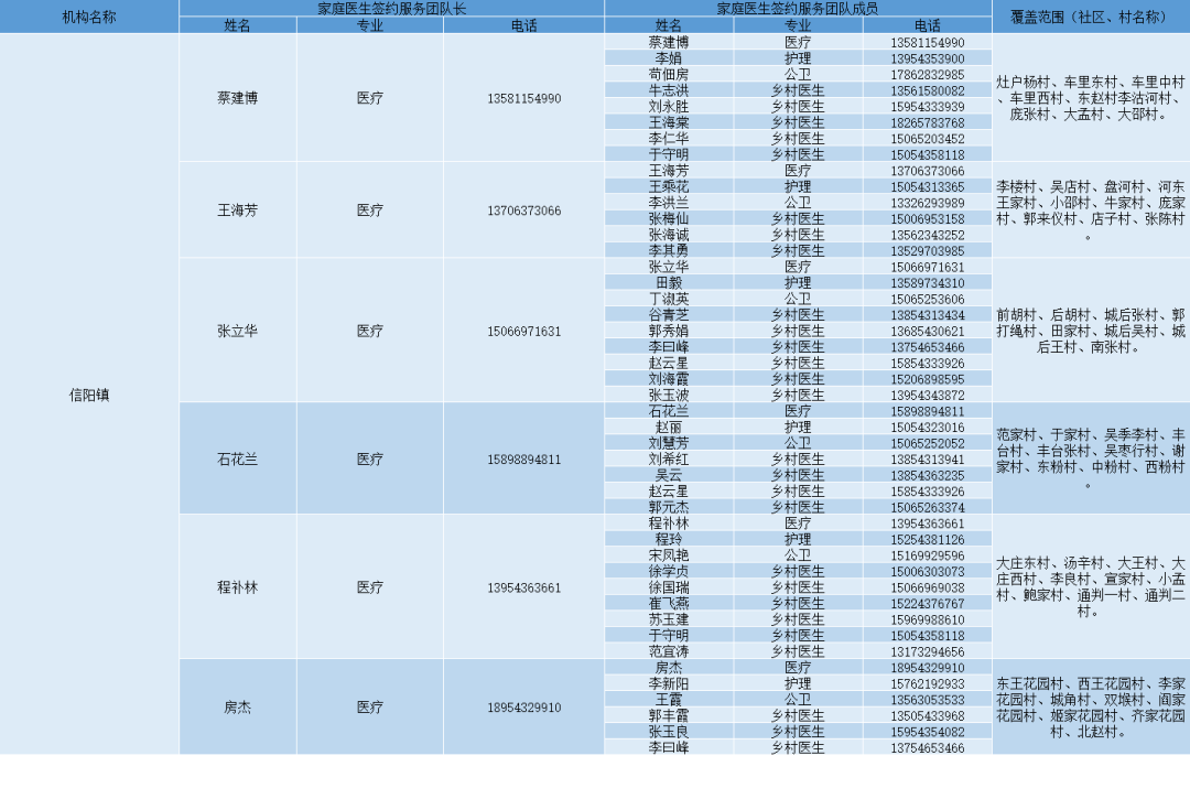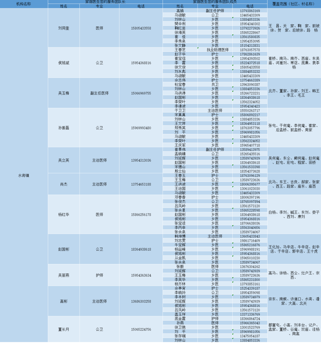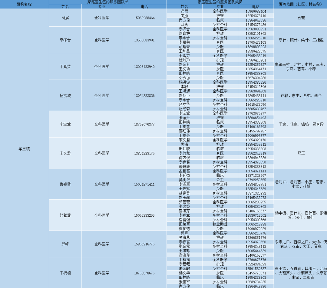 无棣县各镇街家庭医生签约服务团队信息及服务范围公示