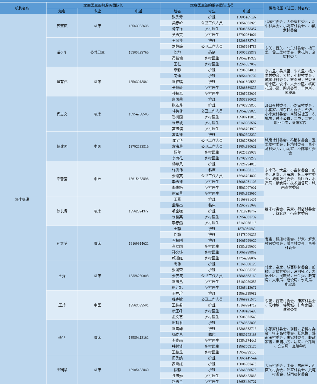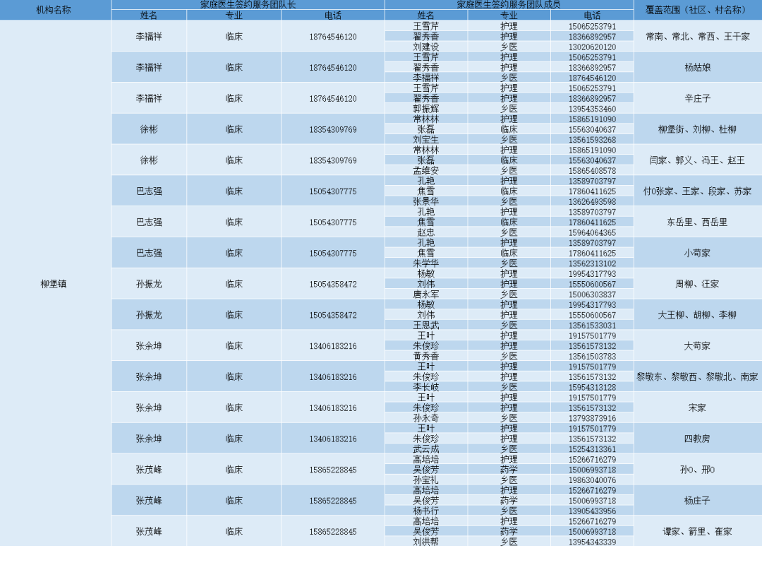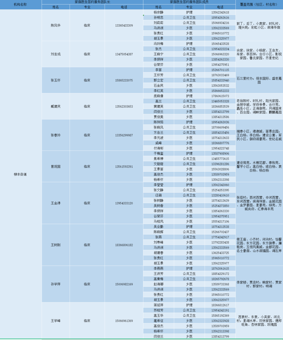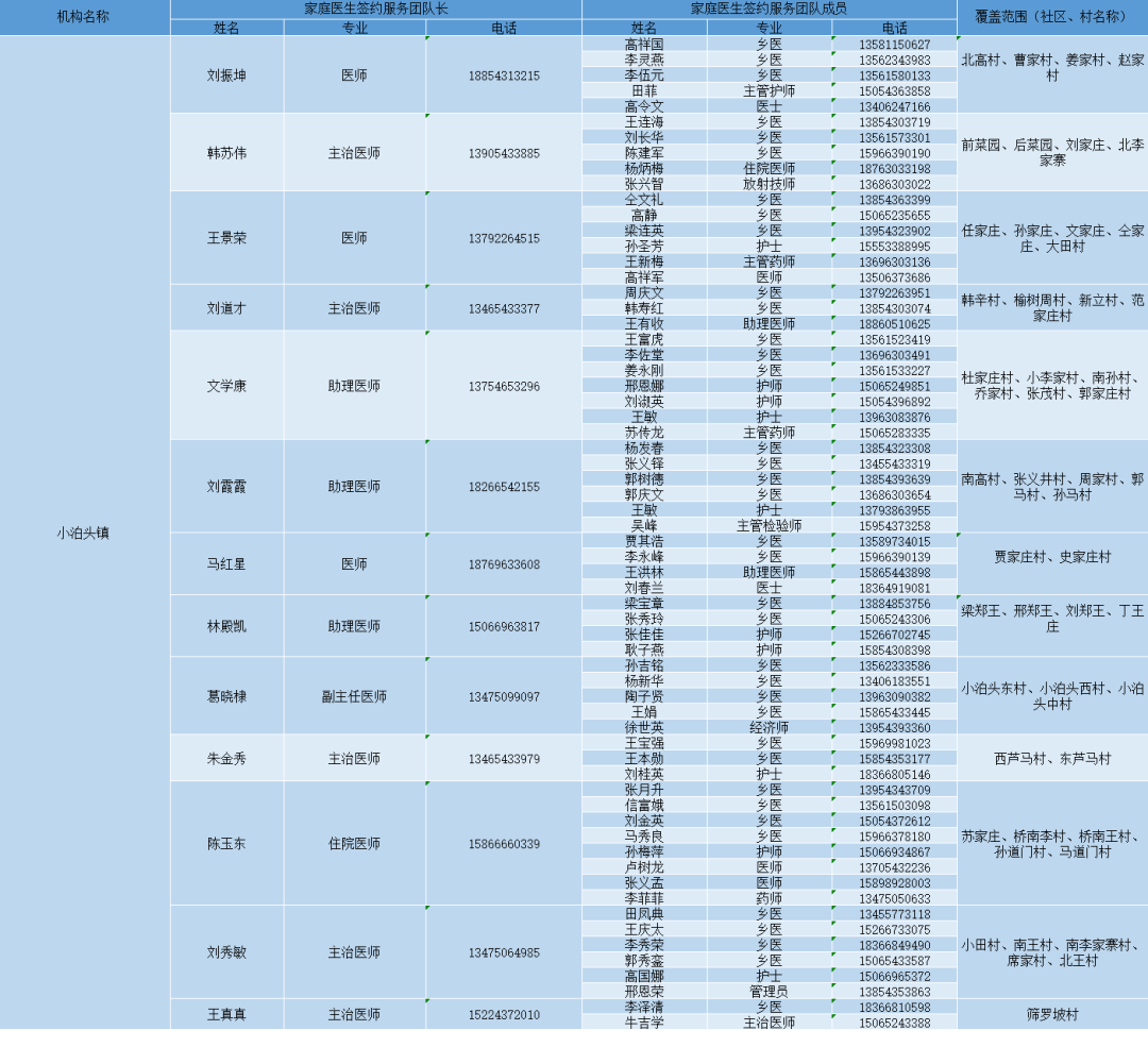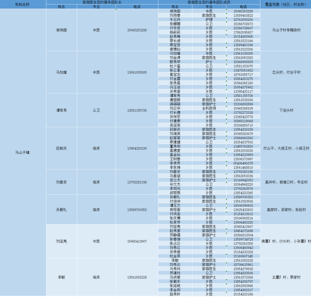 无棣县各镇街家庭医生签约服务团队信息及服务范围公示