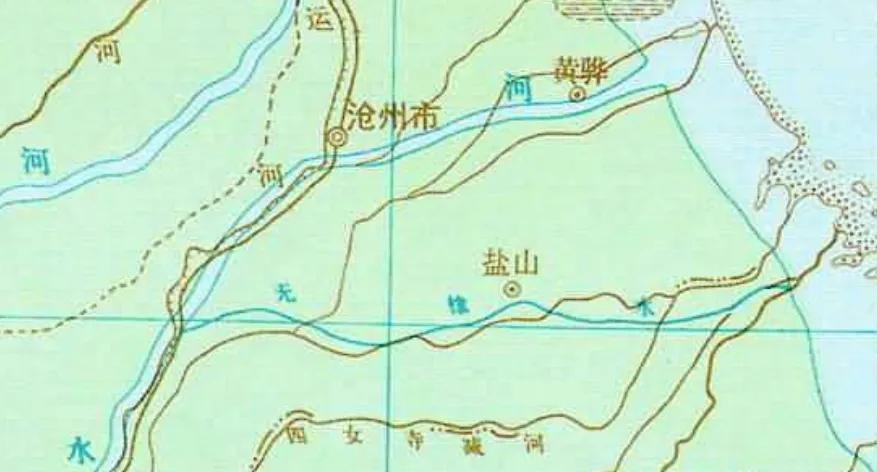 无棣,得名于先秦时期的无棣水(又称无棣沟)。不少文献都记载认为,盐山附近属于先秦“无棣邑”。比如《通典·州郡十》:“盐山,春秋时齐无棣邑。”从地图上看,无棣水当年确实流经今盐山县南部(据《水经注》记载,无棣水分干流支流,干流与今盐山县城南的宣惠河走向基本一致,汉黄河改道后逐渐消失,支流则位于今庆云县以北,既是鬲津河,也是当年无棣水支流的一部分,现为漳卫新河,走向已经改变。两河同在大口河入海)。