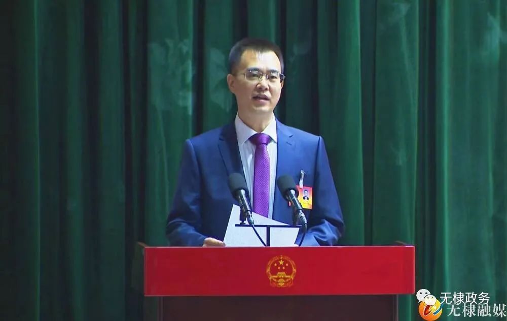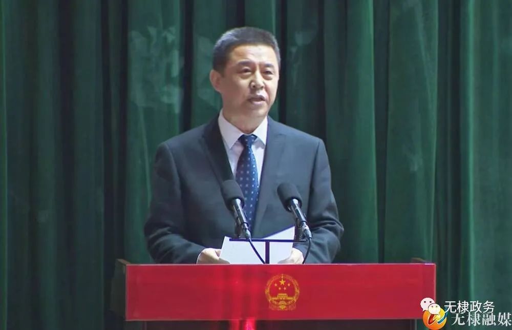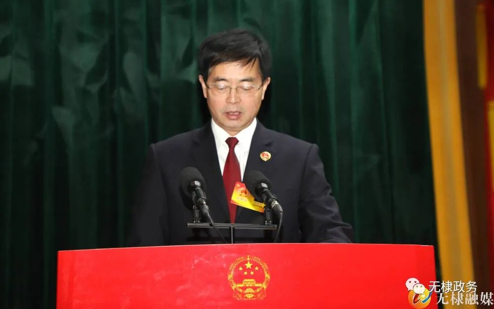 在热烈的掌声中,王涛代表县政府向大会作政府工作报告。