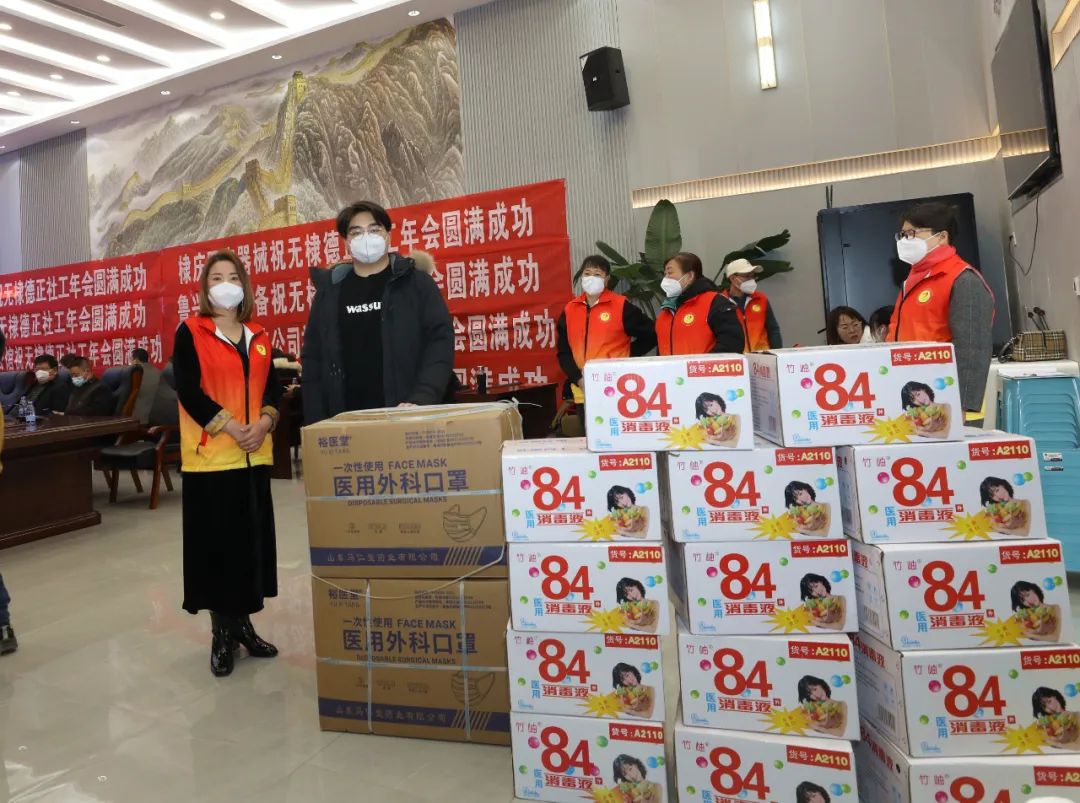 9.山东棣庆医疗器械(无棣中医院对面)张春霖经理赞助医用外科口罩8000只及84消毒液20箱;