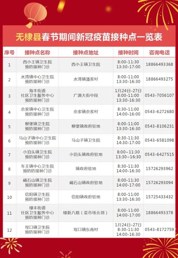 春节假期无棣这12处新冠疫苗接种点正常接种