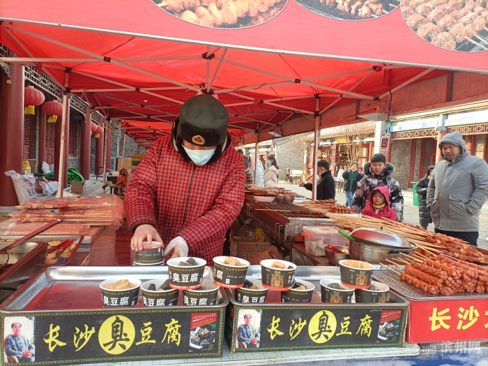 1月25日,在无棣古城文化旅游区美食一条街,市民正在品尝美食。