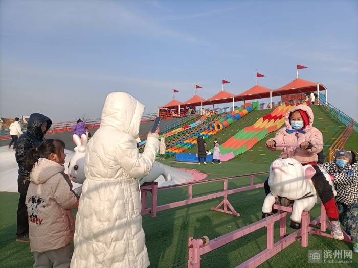 1月25日,在无棣古城文化旅游区,市民在游乐场尽情游玩。