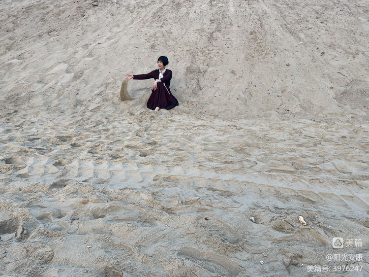 在海边玩沙子,没有在库布齐沙漠玩沙的无助和寂寥,有的是人与自然的和谐。