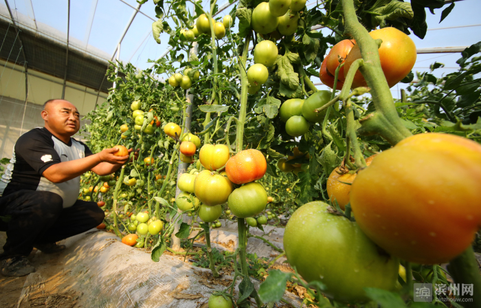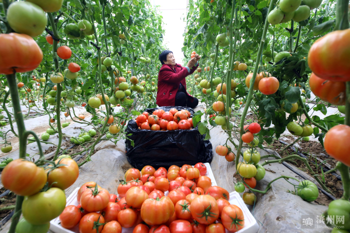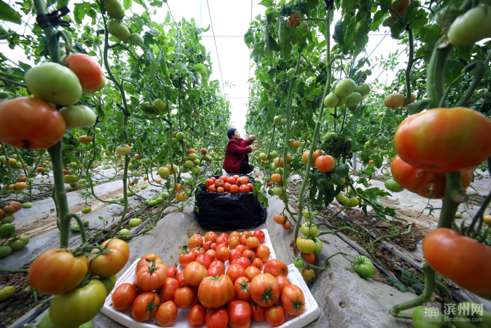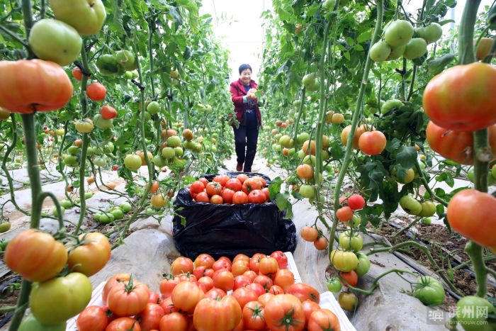 “雨水”到柿子红。时下,无棣县信阳镇李古河村汇泰无棣农牧蔬菜基地大棚里,西红柿迎来了丰收季。蔬菜基地不仅让村集体增加了收入,还为村民创造了家门口挣钱的机会。