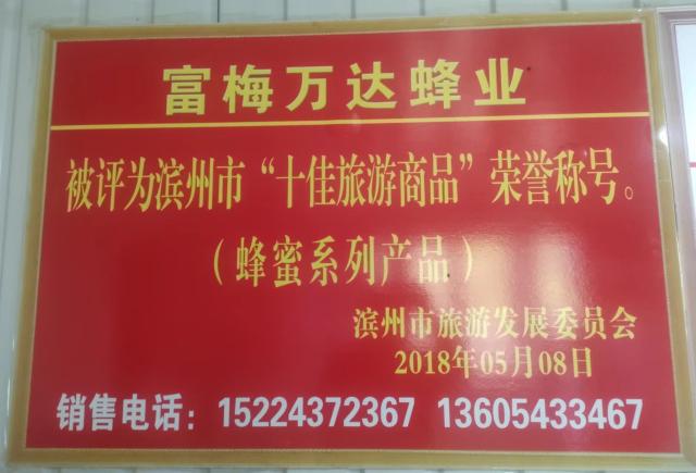 据蜂场主人郭富梅介绍,她从10多年前就开始蜜蜂养殖,经过多次外出考察学习,管理经验日渐丰富,蜂蜜产品以纯正无杂俏销当地市场及周边县市区,2018年,其蜂蜜系列产品荣获滨州市“十佳旅游商品”荣誉称号。
