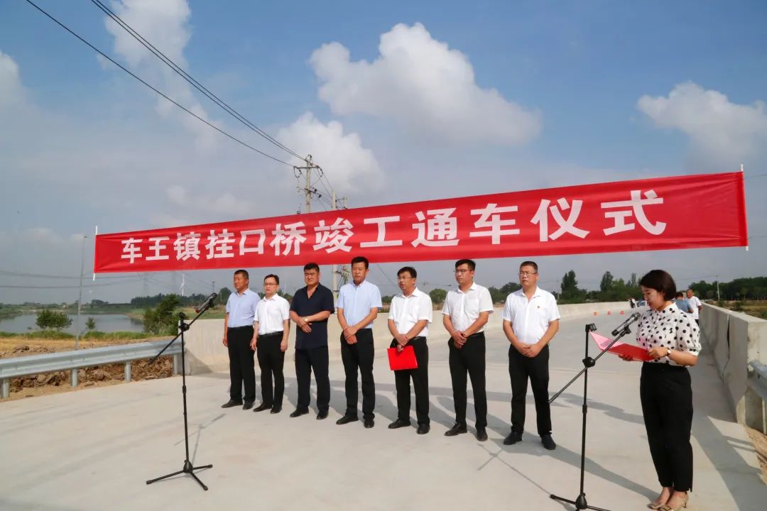 “我宣布,挂口桥正式通车!”随着车王镇人大主席李剑同志的一声号令,挂口桥于6月26日上午正式通车,镇党委书记刘洪权,车王镇全体领导干部,蒋桥社区村两委班子成员,村民代表等出席通车仪式。