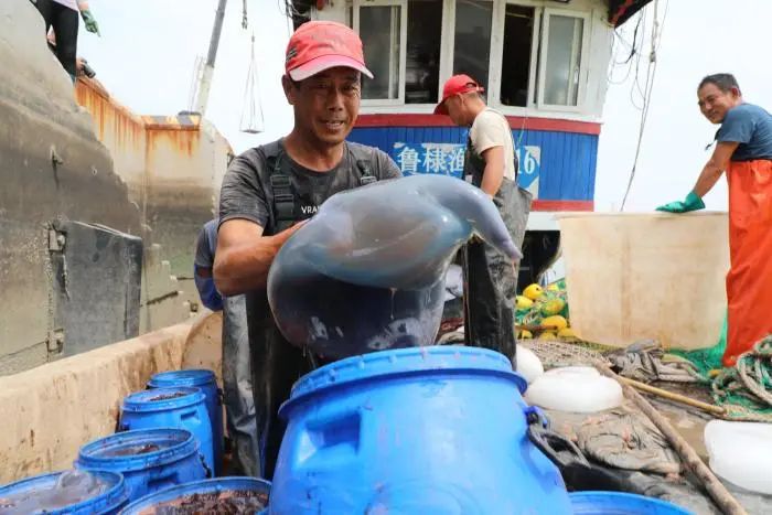 风雨过后海蜇鲜,渔民丰收笑开颜。又是一年海蜇丰收季,8月2日,无棣县渤海湾,当地渔民正在忙着捕捞海蜇。