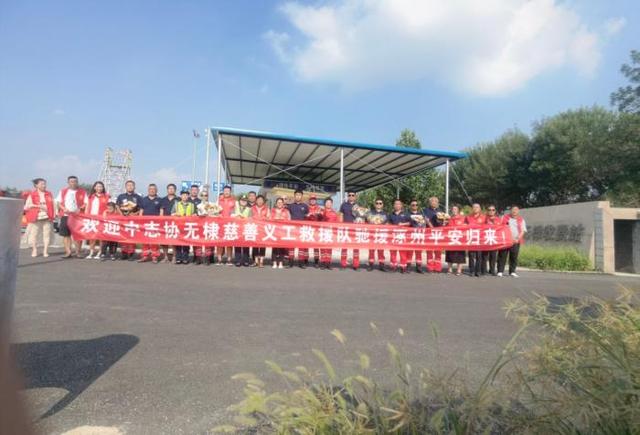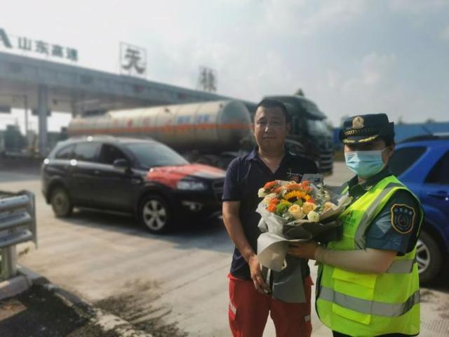现场,收费广场欢迎的人群手持鲜花,整齐划一列队等候,以最高礼仪,迎接英雄们平安归来。当无棣县中志协应急救援队人员下车时,收费员送上鲜花,凯旋的英雄们成了最美的风景。无棣收费站在岗员工向参与此次赴河北救援的英雄敬礼,表达他们对救援队员最崇高敬意。