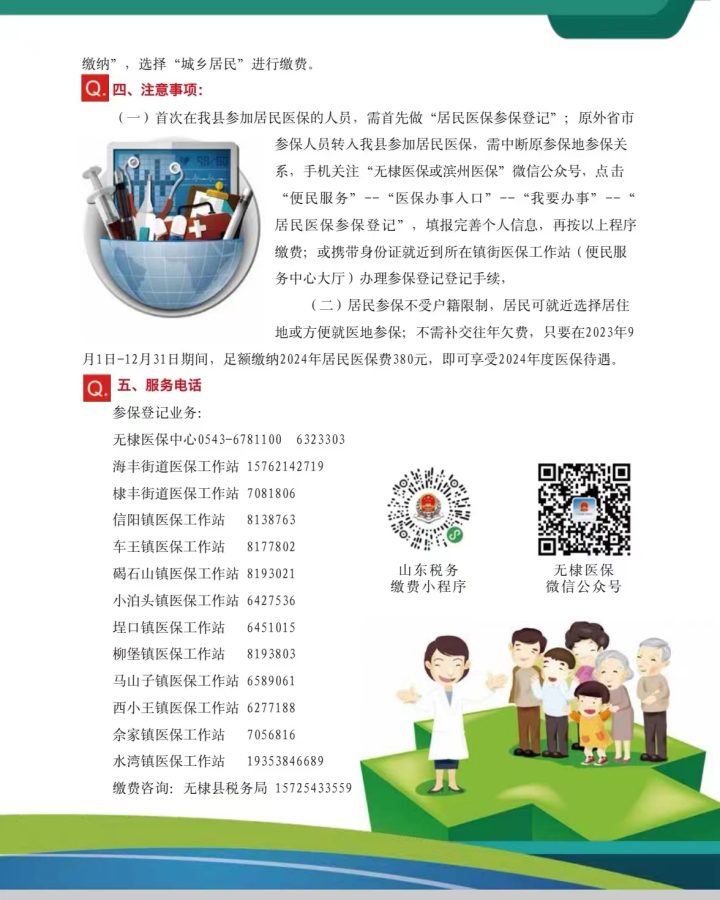 2024年度无棣县城乡居民基本医疗保险缴费明白纸