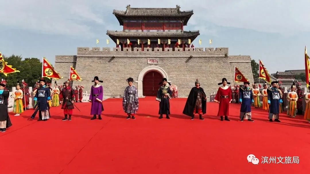 无棣古代十大名人开城迎宾无棣古城迎“双节”,首日喜创开门红上午,无棣古城十大名人开城迎宾。整场仪式分为“沙场点兵”与“历史名人迎宾”两个部分,融合中华传统文化,庄严隆重,恢宏大气。既保持了古代开城仪式的基本程序,又具备一定的观赏性、体验性和互动性。无棣古城古老的城门为游客徐徐打开。