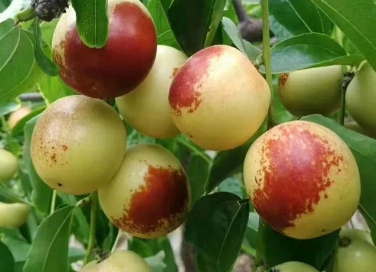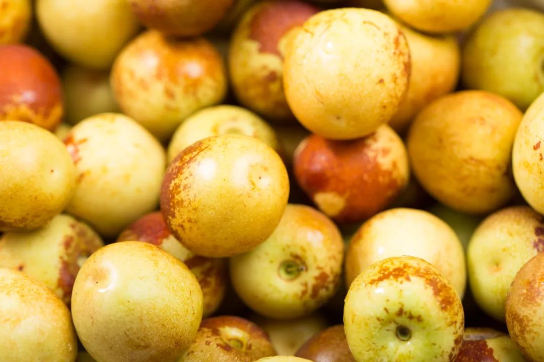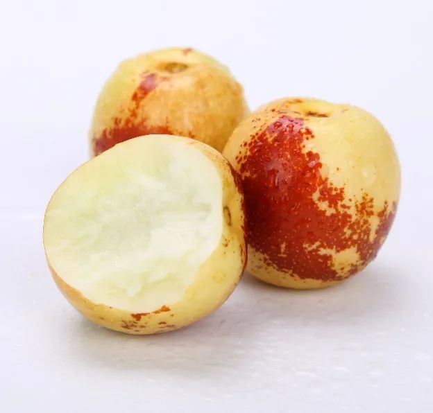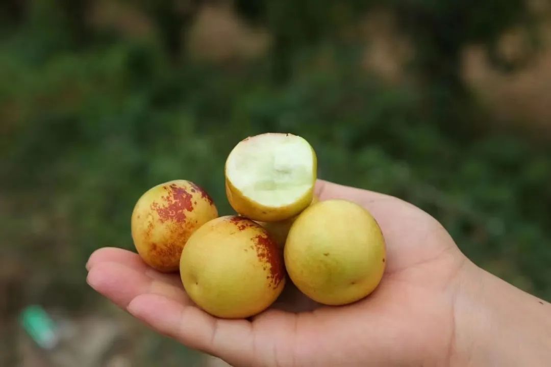 成熟的冬枣呈黄色与赤红交错,果子饱满圆润光滑,圆嘟嘟的模样甚是可爱。