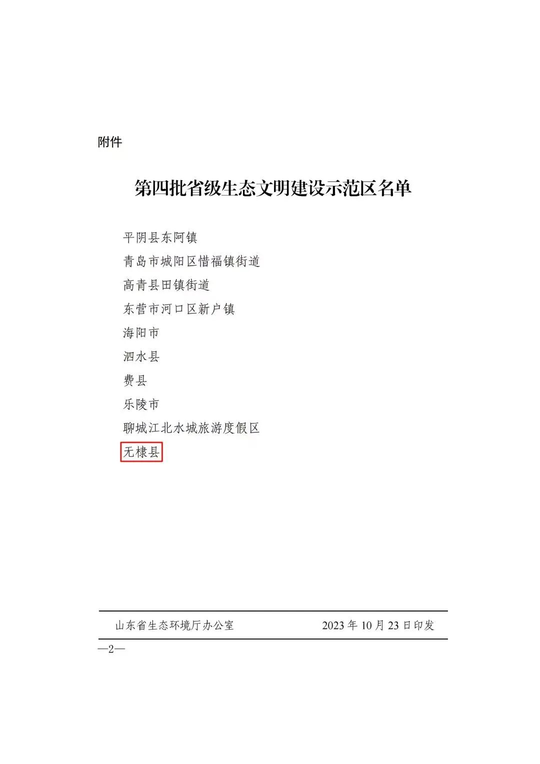 近日,山东省生态环境厅公布第四批省级生态文明建设示范区名单,无棣县榜上有名。