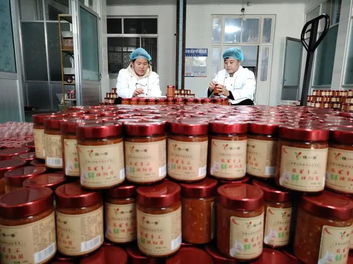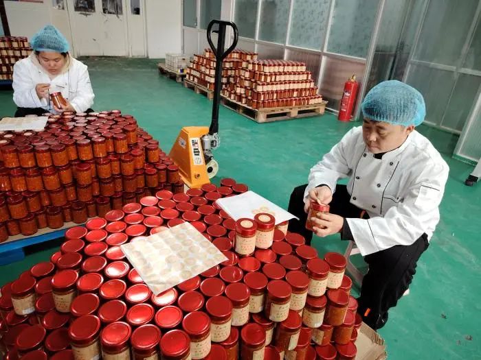 白杨食品公司今年5月份正式投产,由村集体与村民共同出资成立,注册“棣一酱”商标,以生产销售农家辣椒酱为主要业务,将本地各类特色农产品进行统一包装、设计、销售,同时,开展直播带货,拓宽销售渠道。今年以来,无棣县通过实施“联村共富”工程,不断探索“龙头企业+微工厂+农户”模式,变以前的“单打独斗”为如今的“抱团发展”,推动组织联建、人才联育、产业联兴、治理联抓。如今在该县,随处可见的“党建微工厂”带动当地1200余名群众家门口就业,村集体增收600万元,年人均增收2万元以上。