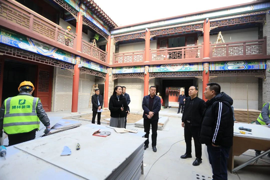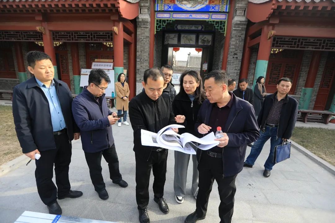 贾维平一行先后步入东城门生态合围绿化提升工程现场、县衙、文庙、张映汉故居、四城门、棣州大剧院、张衍重故居、婚礼堂项目建设现场、婚姻登记服务中心项目、黄河文化研学中心、非遗馆、博物馆、李之仪纪念馆,金石文化节搭建现场实地查看施工情况,详细听取相关责任人汇报,了解现场调度项目进展情况及存在的问题,现场督导限期完成。