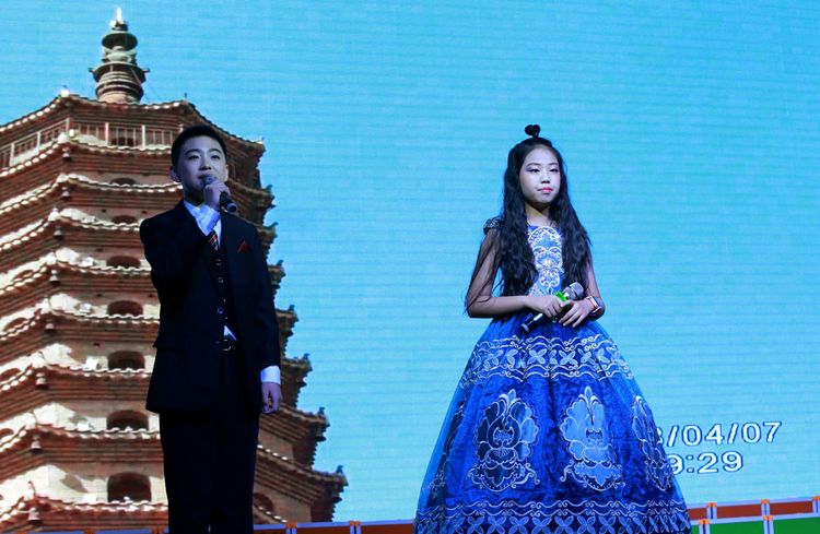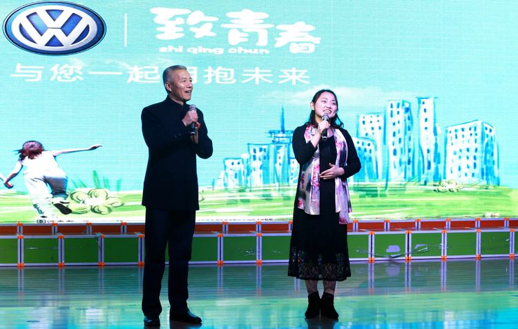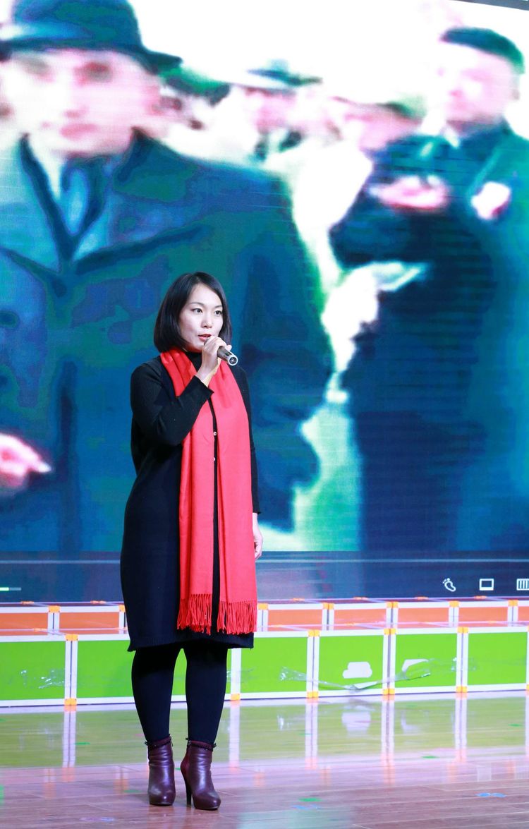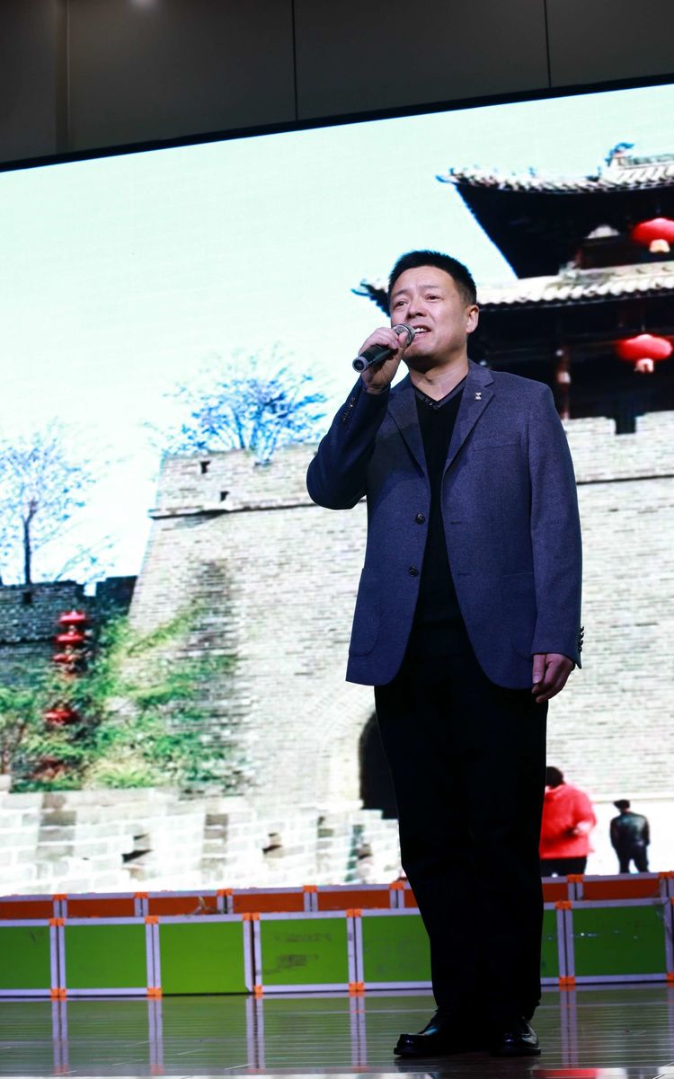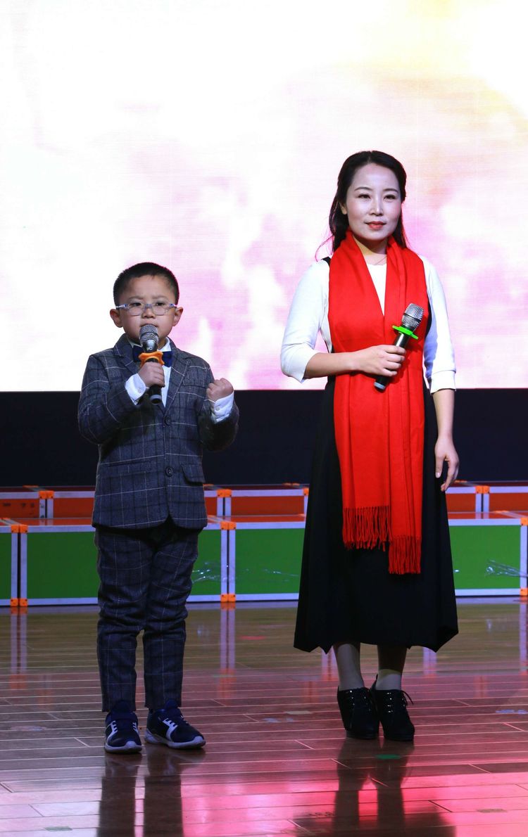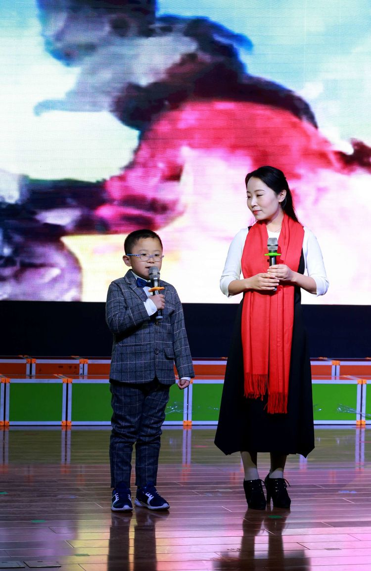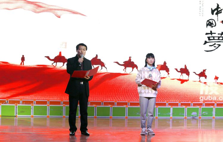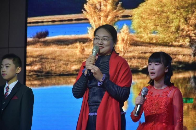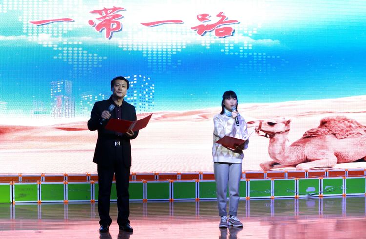 主持人杜宝富与现场的同学们在互动,诵读有关“黄河”的古诗。