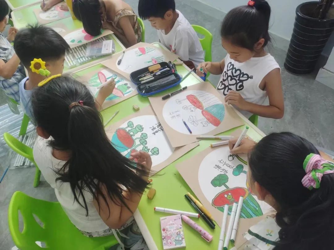 绘画课上老师引导孩子们用发现的眼光去认真对待生活,让孩子们用色彩和线条捕捉夏日的清凉与美好,完成自己关于“清凉一夏”的绘画作品,为这个夏天留下独特的记忆。