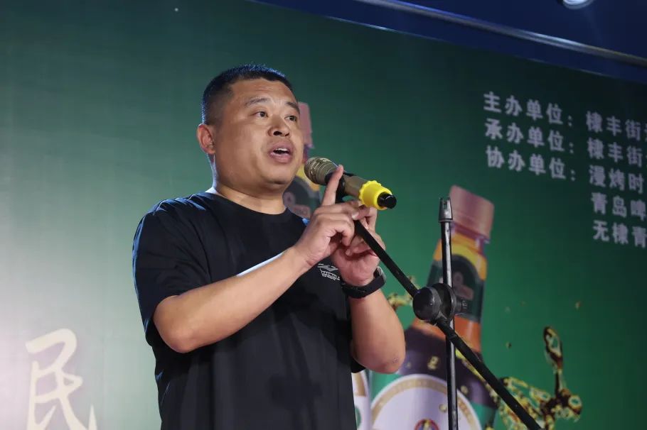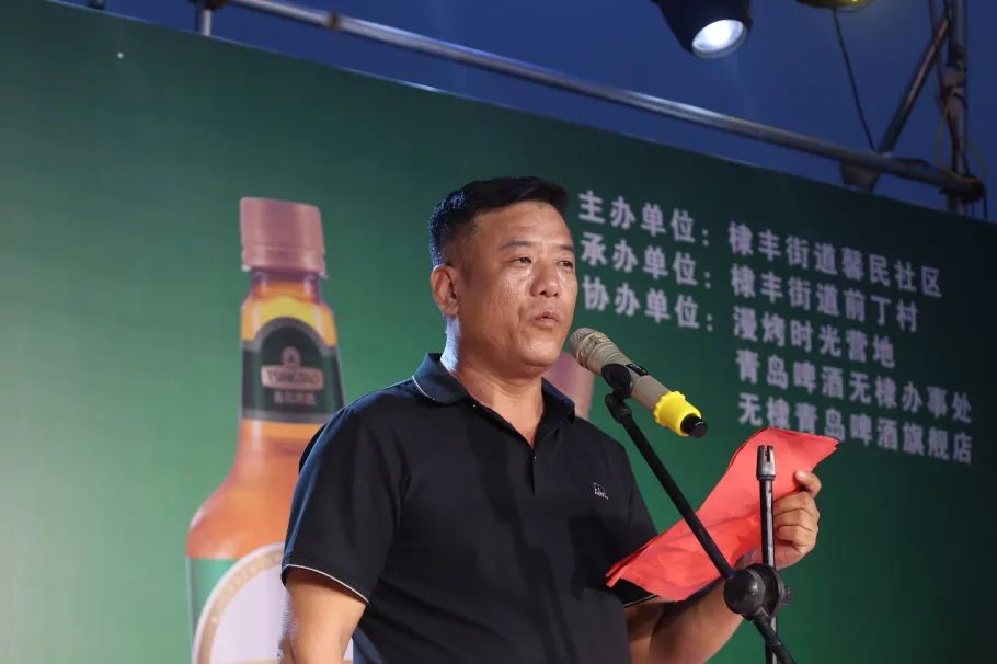 棣丰街道党工委委员、办事处副主任田荣祖宣布2024“和美棣丰、活力馨民”青岛啤酒乡村音乐烧烤啤酒节开幕