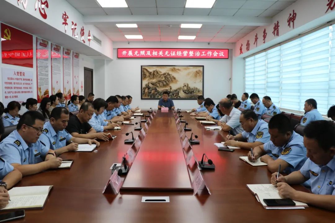 8月5日,召开专题会议,党组书记、局长马兆宏对查处无照及相关无证经营专项整治工作进行安排部署。他要求,进一步提高思想认识,明确职责分工,充分认识查处无照及相关无证经营行为的重要意义,切实提高查处无照及相关无证经营行为的自觉性和紧迫性,探索建立监管长效机制,有效降低风险隐患。