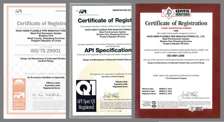 海王星无棣海忠软管制造有限公司是一家专注于海洋复合软管研发、生产和销售的高新技术企业,是国内第1家、全球第4家海洋复合软管供应商,于2012年获得了美国石油学会颁发的APISpecification Q1及海洋复合软管产品会标认证证书(API 17J)证书,标志着无棣海忠公司已经与国外三家软管公司一样具备了‍国际认可的海洋软管设计制造证书。