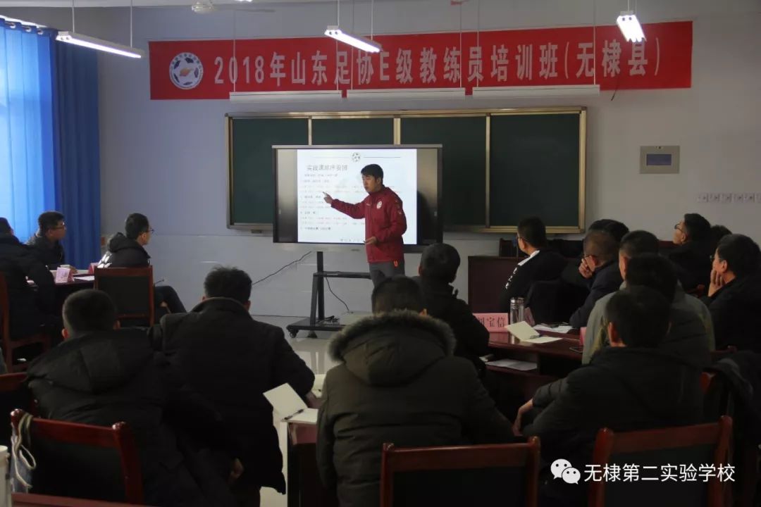 12月27日上午,2018年“山东足协E级教练员无棣县首期培训班”在县第二初级中学开班,特邀山东足协讲师陈宏对全县30名中小学体育教师和足球工作相关人员进行专题培训。