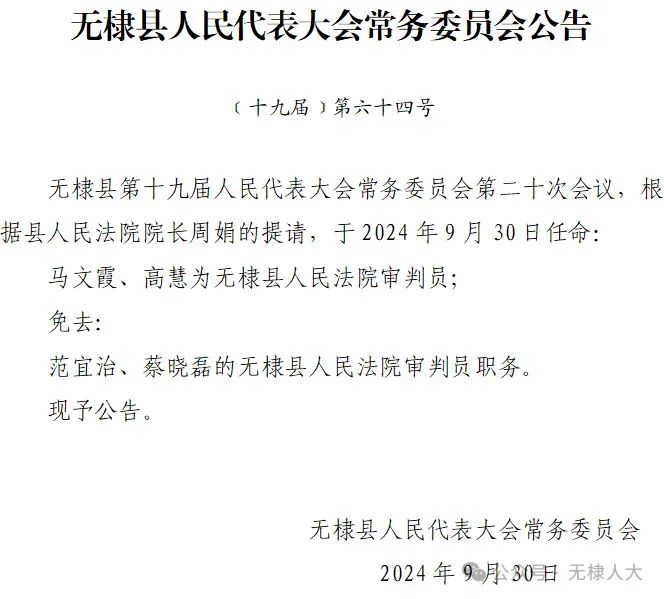 无棣最新人事任免!
