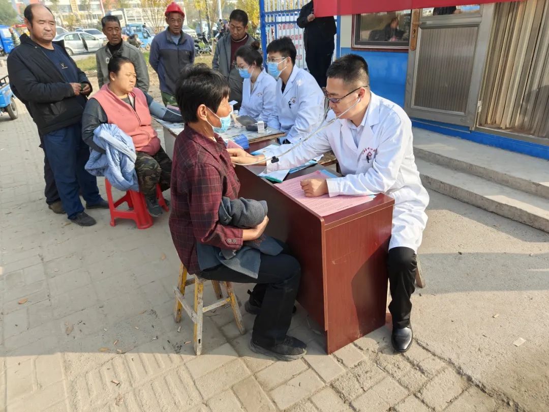 无棣县中心医院医护人员为务工人员进行量血压、测血糖、心肺听诊等义诊活动,同时耐心地为每一位前来咨询的务工人员解答疑问,并根据他们的身体状况给予专业的健康建议。对于一些患有慢性疾病的务工人员,医生们更是细心地为他们讲解疾病的防治知识,提醒他们要按时服药、定期复查。