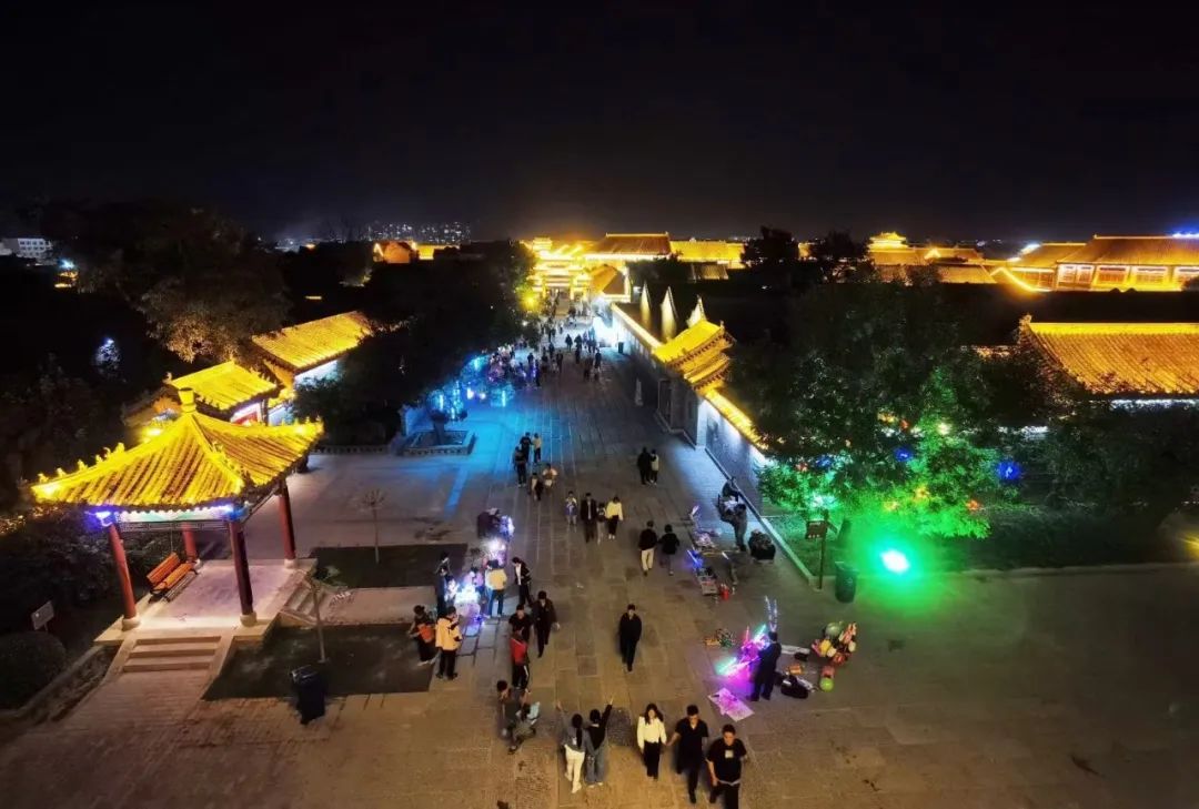 漫步在古城的主干道上,道路两旁的古树被五彩斑斓的灯带缠绕,宛如披上了节日的盛装。暖黄色的灯光如繁星般闪烁,与大红灯笼相互映衬,营造出温馨而喜庆的氛围。夜幕降临,灯光亮起,整个街道仿佛被金色的光芒笼罩,人们都沉浸在这迷人的光影之中。无棣古城,灯光秀将新春氛围推向了高潮。古建筑在灯光的映照下,显得更加雄伟壮观。护城河两岸,灯光倒映在水面上,波光粼粼,如梦如幻。一艘艘装饰精美的游船停在岸边,不少游客驻足欣赏,沉醉在这如诗如画的夜景之中。