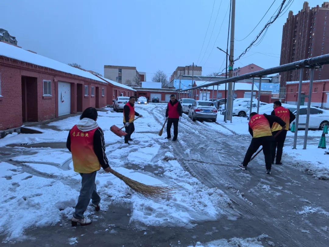活动伊始,志愿者们顶风冒雪,兵分三路,由党员志愿者担任队长,迅速投入到除雪工作中。他们的目标是海丰街道的中立家园、种子公司家属院、老工会家属院、卫生局家属院、教体局家属院及环保局家属院六个小区,这些小区中居住着许多老年人和弱势群体,出行安全更需保障。志愿者们不畏严寒与艰难,纷纷挥舞着除雪工具,干劲十足。