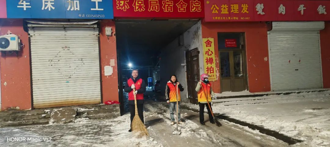 此次扫雪活动持续时间长、劳动强度大,但志愿者们毫无怨言。有的志愿者手已冻麻,有的多次在雪地上摔倒,还有的鞋袜湿透,但他们依然坚持除雪,每个人都干得汗流浃背,脸上却洋溢着喜悦的笑容。从下午四点到晚上十点,他们成功清理了六个小区的积雪,开辟出一条条“平安路”“温暖路”,赢得了居民们的纷纷夸赞。