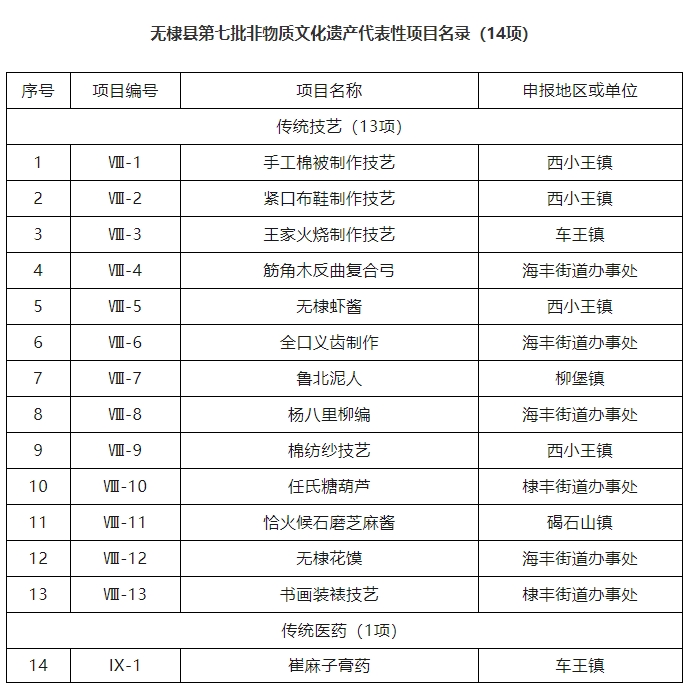 附件:无棣县第七批县级非物质文化遗产代表性项目名录(14项)