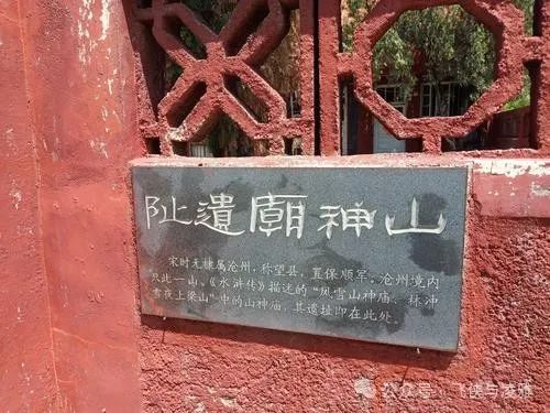 还有考证说《水浒传》中林冲“风雪山神庙”那段中提到的“山神庙”也是在这座碣石山上。因为无棣在北宋时期隶属沧州——沧州景城郡保顺军。林冲发配沧州看守军用草料场,沧州这片地方就只有这一座山,如果有山神庙不就应该在这座碣石山么?可能真有这么一座山神庙,山上确实立了个牌牌写着“山神庙遗址”。