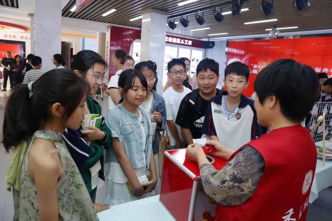 走进一楼大厅,七组铺着“童心守护”桌布的长桌格外醒目,书籍、玩偶、文具等闲置物品整齐陈列,每件物品都写着“小主人”手写的暖心寄语。“这本《昆虫记》陪我度过了整个暑假,希望你能喜欢它!”12岁的小雨将书籍递给对面的女孩,换回一个毛绒企鹅挂件。活动现场,孩子们化身“小掌柜”,主动介绍自己的物品,甚至为心仪的物件“讨价还价”。