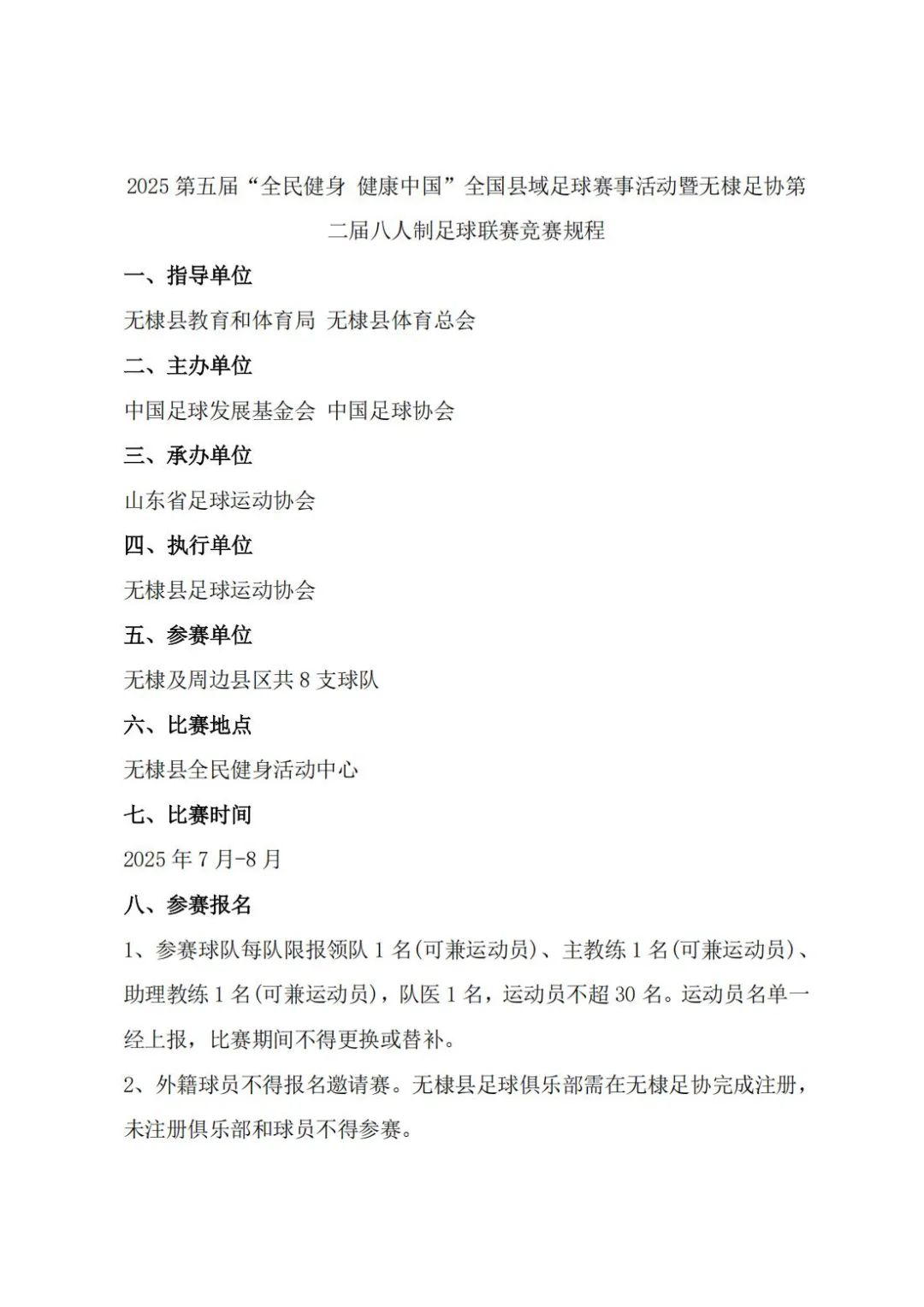 关于举办2025年“全民健身 健康中国”全国县域足球赛事暨无棣足协第二届八人制足球联赛的通知